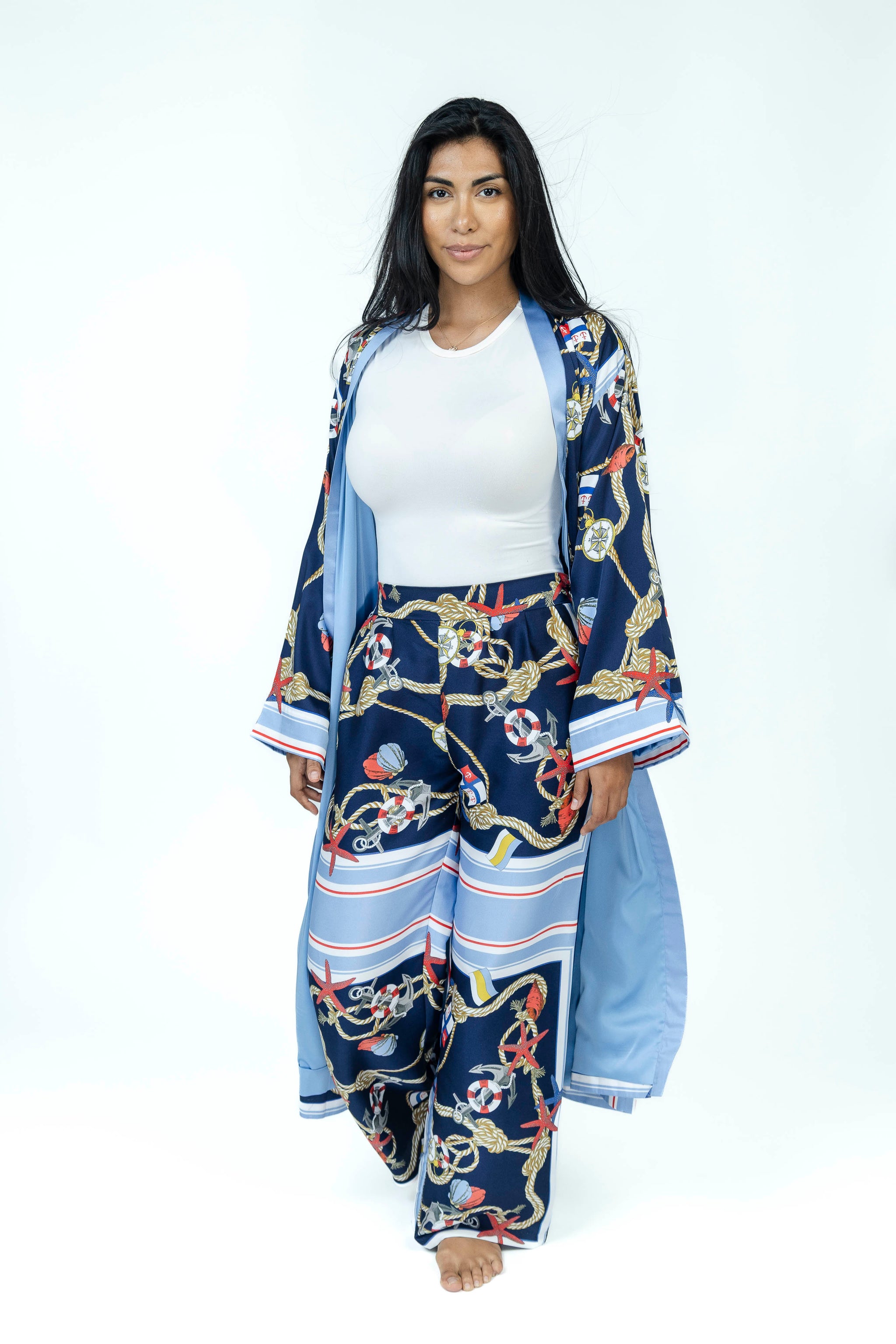 Nautical Knot Silk Set | Kimono + Pants